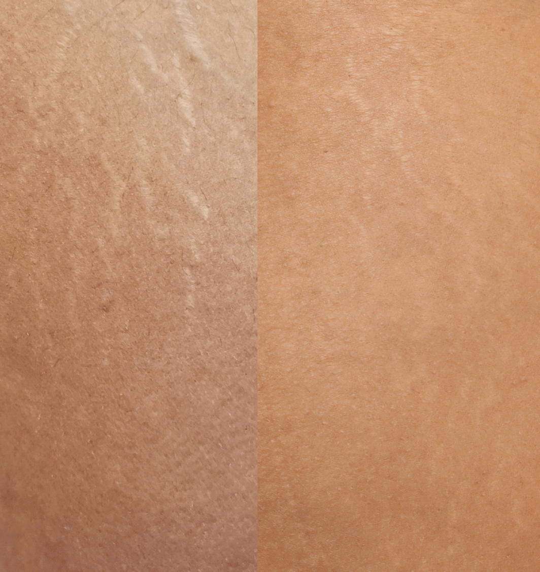 Résultat : une peau, visiblement plus lisse, plus ferme, avec une nette amélioration de l’aspect des vergetures et des cicatrices dès les premières séances.